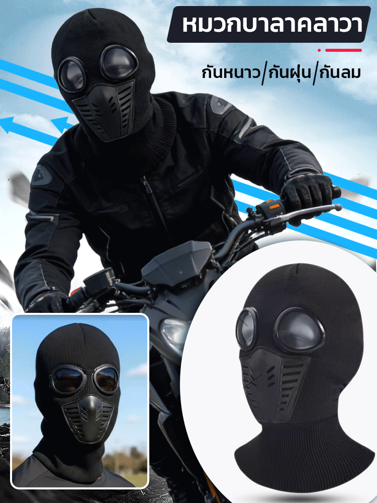 หมวกสวมหัวพร้อมแว่นตานิรภัยกันฝุ่นกันลม